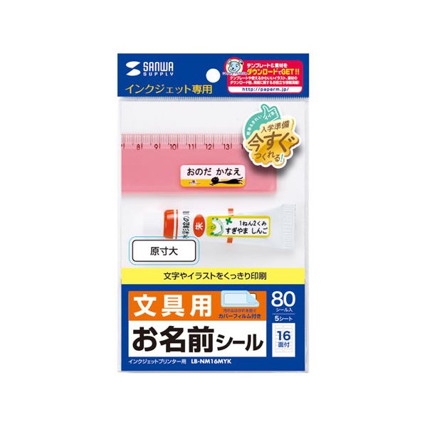 商品仕様: 【5個セット】 サンワサプライ インクジェットお名前シール LB-NM16MYKX5
