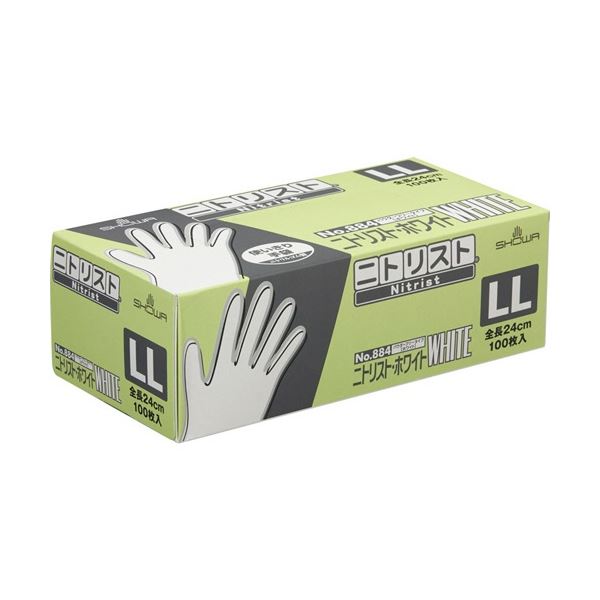 ショーワグローブ No.884 ニトリスト・ホワイト パウダーフリー LLサイズ NO.884-LL 1箱 (100枚) 使い捨て手袋 使いきり手袋 白