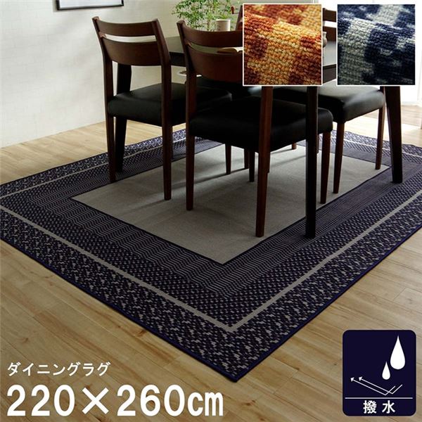 商品仕様: ダイニングラグ 撥水 長方形 シンプル キズ防止 ネイビー 約220×260cm