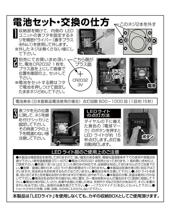 ●LED部の電池(CR2032)は別売となっております。1個お買い求めの上、こ使用下さい。