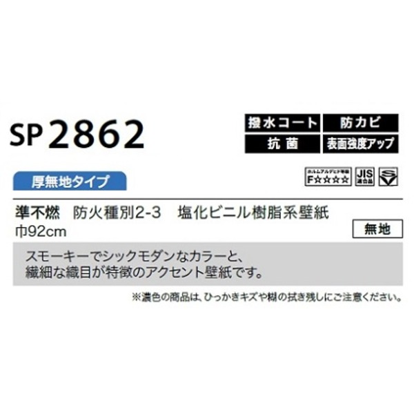 商品仕様: のり無し 壁紙 サンゲツ SP2862 無地 92cm巾 25m巻 日本製 防カビ ホルムアルデヒド対策品 JIS規格 糊無し ウォールペーパー
