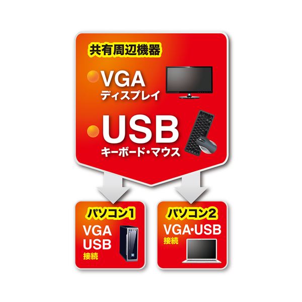 パソコン PC 切り替えの魔術師 2台を1台に結ぶ便利な自動切替器 快適な作業環境を手に入れよう パソコン PC 自動切替器(2:1) SW-KVM2UUN