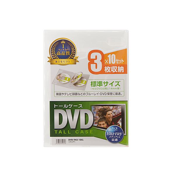 メディアを3枚整理 収納 可能な一般的なDVDケースと同じ14mmの薄さ クリアな外観で10枚セット のDVDトールケース、あなたのコレクションをスタイリッシュに保管 DVDトールケース(3枚整理 収納 ・10枚セット・クリア) DVD-TN3-10CL
