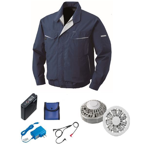 快適な空調を纏う、綿とポリ混紡の空調服 FAN2200GとRD9261、LISUPER1のセットで、ネイビーの5Lサイズ 快適な空調を纏う、綿とポリ混紡の空調服 FAN2200GとRD9261、LISUPER1のセットで、ネイビーの5Lサイズ