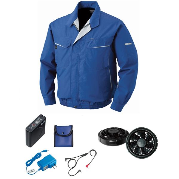 商品仕様: KU90470 空調服 R 綿・ポリ混紡 FAN2300B・RD9261・LISUPER1セット ブルー 青 LL