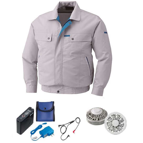 KU90450 空調服 R 綿・ポリ混紡 脇下マチ付き FAN2200G・RD9261・LISUPER1セット シルバー 4L 送料無料