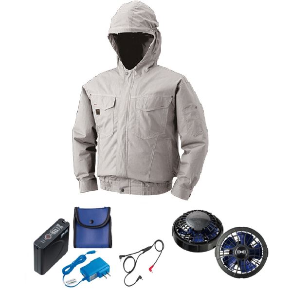 KU91410 空調服 R 綿薄手フード付 FAN2400SPBB・RD9261・LISUPER1セット シルバー M 快適な夏を演出する 薄手の綿素材にフード付きの空調服 2400回転のファンで涼しさ倍増 シルバーの魅力を纏うMサイズセット 送料無料