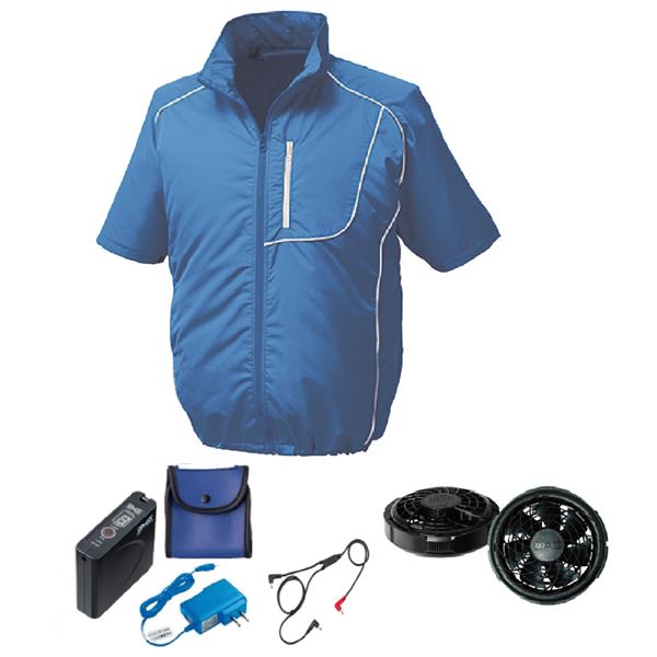 商品仕様: KU91720 空調服 R ポリエステル製 半袖 FAN2300B・RD9261・LISUPER1セット ブルー 青×ホワイト 白 4L