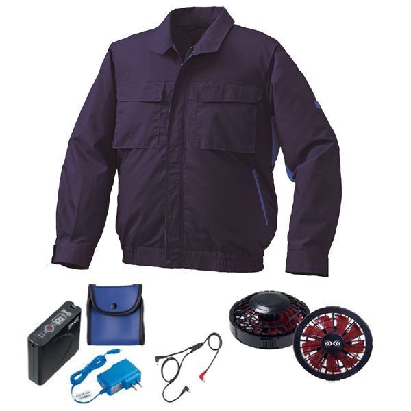 商品仕様: KU91910 空調服 R 綿・ポリ混紡 脇下マチ付きII FAN2200BR・RD9261・LISUPER1セット ネイビー×ブルー 青 5L