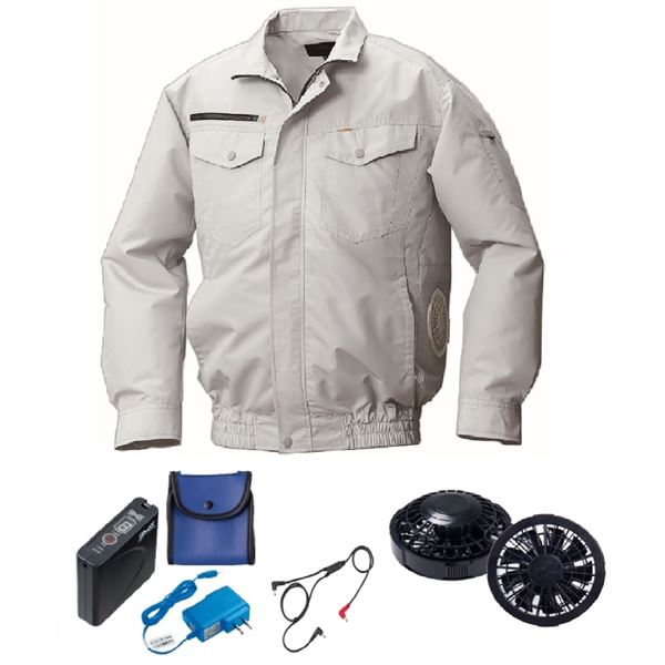 快適な着心地 綿とポリ混紡の空調服 横ファンで涼しさ倍増 FAN2200B・CBB500ロングケーブル 配線 ・LISUPER1セット付き シルバーの5Lサイズ 快適な着心地 綿とポリ混紡の空調服 横ファンで涼しさ倍増 FAN2200B・CBB500ロングケ