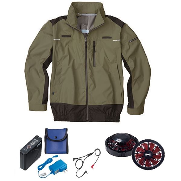 KU92110 空調服 R ポリエステル製 遮熱フルハーネス仕様 FAN2200BR・RD9261・LISUPER1セット カーキグリーン LL 緑 送料無料