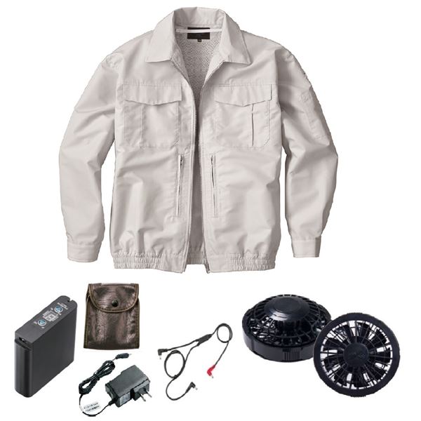 快適な空調を纏う、進化した空調服 綿ポリ混紡の心地よさとスペーサー一体型の快適さを実感せよ FAN2200B・RD9261・LIPRO2セットで、シルバーの輝きがあなたを包み込む サイズはLLで、最高の着心地をお届けします KU92130 空調服 R 綿ポリ混紡 スペーサー一体型 FAN2200B・RD9261・LIPRO2セット シルバー LL