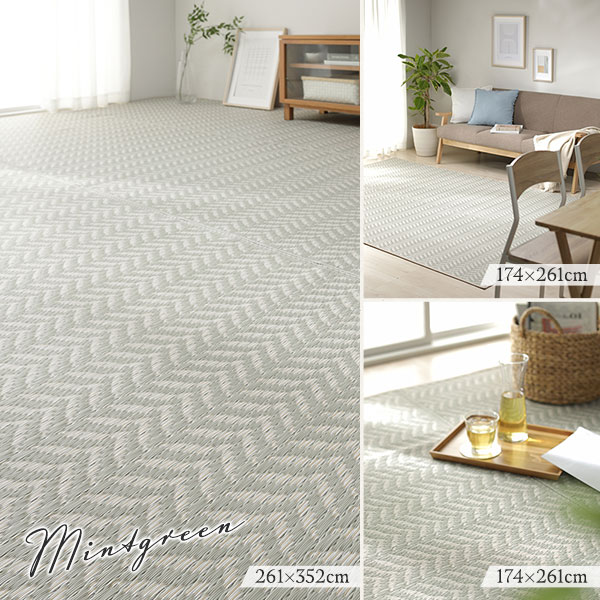 い草 藺草 風 ラグマット じゅうたん カーペット 敷き物 8畳 約348×352cm ミントグリーン 洗える ウォッシャブル 軽量 オールシーズン 折りたたみ可 PP柄上敷 リビング ダイニング 緑 送料無料