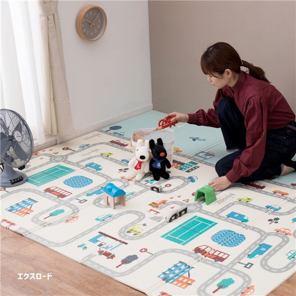 商品仕様: フロアマット 約118×176cm CT折 折りたたみ 撥水 軽量 リバーシブル 水拭き可 防音対策 クッションプレイマット エクスロード