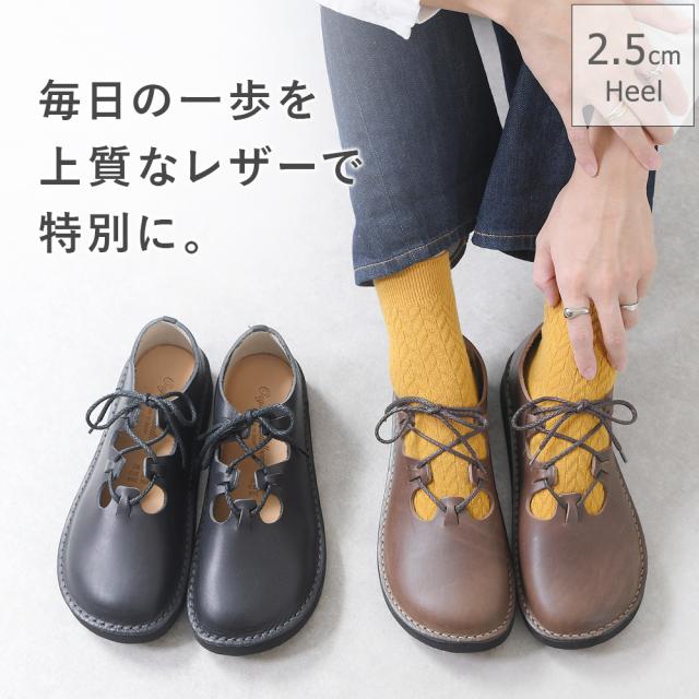 本革 シューズ レディース レザー 牛革 レザーシューズ レースアップシューズ レースアップ 編み上げ 日本製 国産 大きいサイズ 25cm ローヒール フラット 歩きやすい 履きやすい おしゃれ Organic handloom オーガニックハンドルーム COALPORT コールポート OH013 春新作