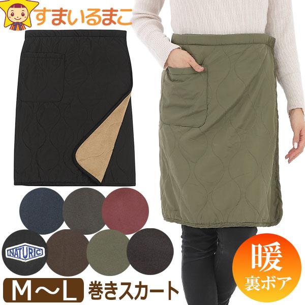 巻きスカート 防寒 レディース NATURIC 裏ボア 薄手 ひざ丈 あったか キルト 軽量 M〜L 34516 35531 メール便は送料無料 婦人 女性 ラップスカート 腰巻き スカート ひざ掛け キルティング 寒さ対策 冷え対策 円形 瓢箪 無地 ワンポイント qw510