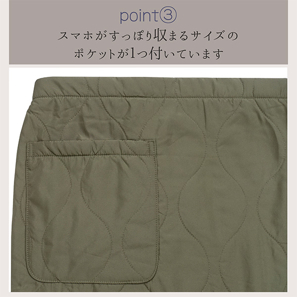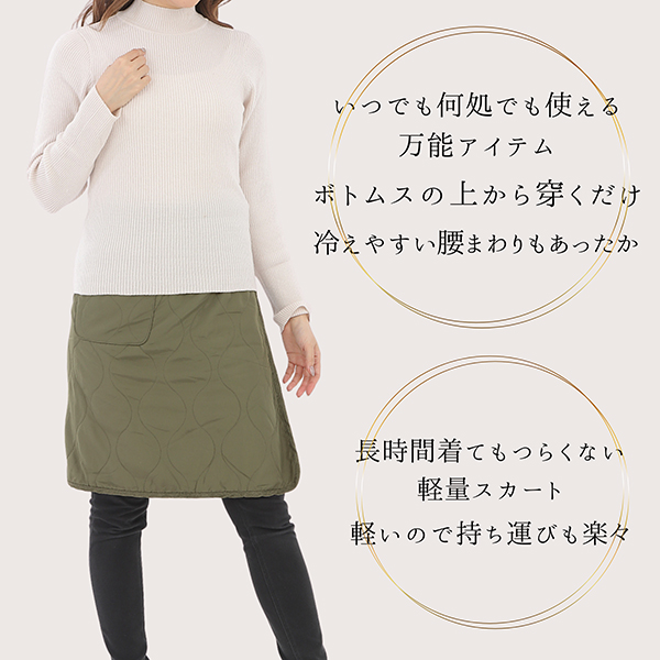 | 商品説明 | ※いつでも何処でも使える万能アイテム!ちょっと肌寒いときにサッと巻けるお手軽さがGOODなあったか巻きスカート/ラップスカート♪ ※軽くて柔らかな表側はキルティング生地で裏側が暖かいボア(薄手) 仕様! ※ウエストはスナップボタン(8つ)とゴムで自由に調節できます。ウエスト調節できるので厚手のトップスを着ても大丈夫◎! ※ポケットが1つ付いています。スマホがすっぽり収まるサイズで小物をちょこっと入れるのに便利! ※長時間着てもつらくない軽量スカート。軽いので持ち運びも楽々。 ※冷やしたくない腰回りをしっかり温めてくれて寒い日のお出かけやオフィスなどでも気軽に使える!アイディア次第で使い方いろいろ!スカートとしては勿論!パンツの上から巻いても可愛い!ブランケットやポンチョ風に肩から羽織ってもOK! |
