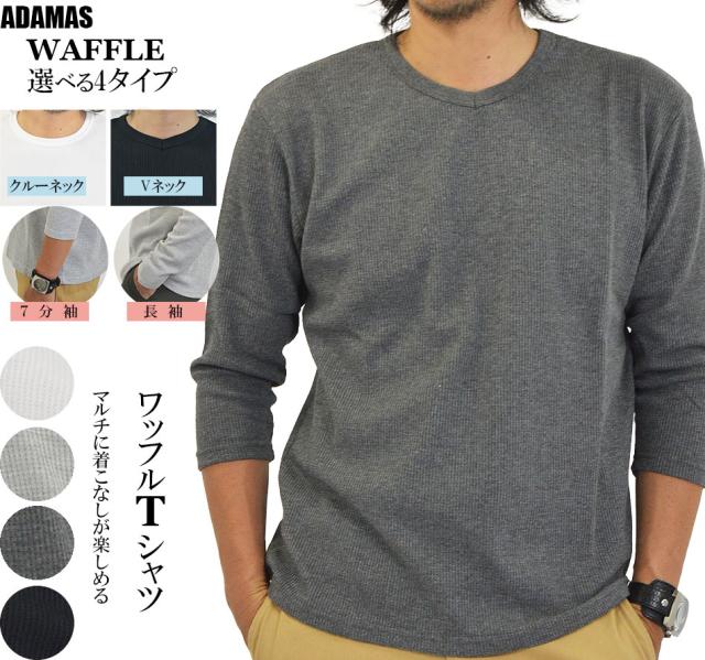 10%OFFクーポン シャツ メンズ 長袖 7分袖 七分袖 無地 クルーネック(丸首) 浅いVネック 白 黒 ロンT 無地Tシャツ 長袖Tシャツ 7分袖Tシャツ 綿 ポリエステル オシャレ ワッフル サーマル ワッフル生地 インナーTシャツ カットソー インナー インナーシャツ かっこいい