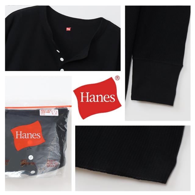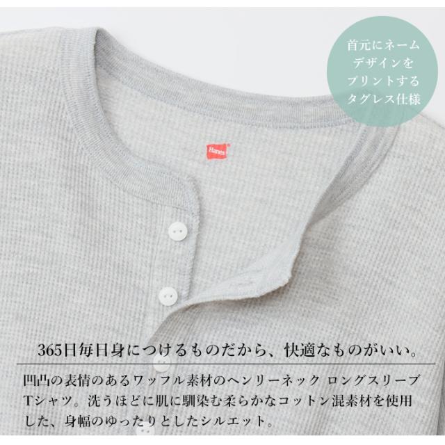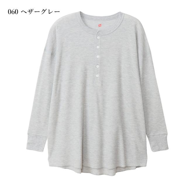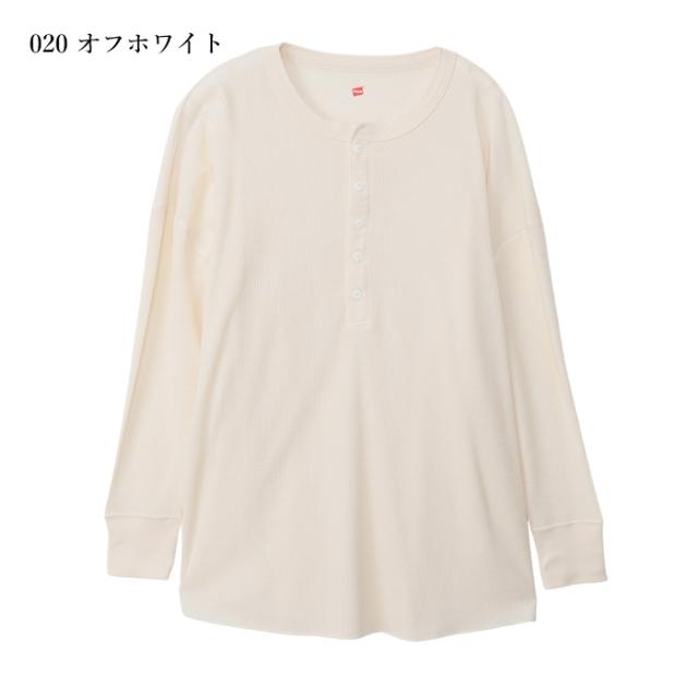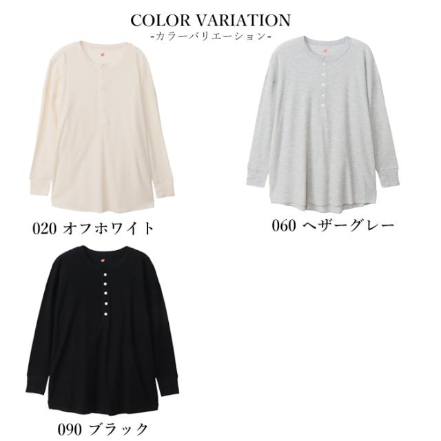 Hanes ヘインズ レディース ワッフル ヘンリ—ネック ロングスリーブ Tシャツ HW4-A502 レディース 長袖 ロンT 無地 カットソー ナチュラル リラックス シンプル フリー 秋冬新作 秋 冬 ホワイト ブラック グレー
