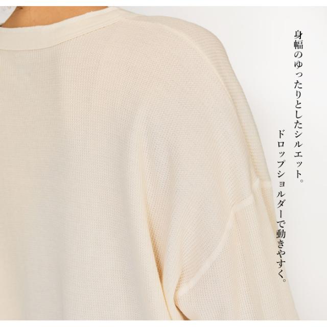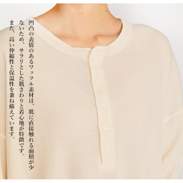 ワッフルヘンリ—ネックロングスリーブTシャツ