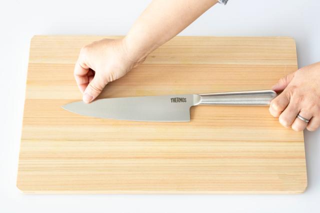 見た目にも美しい一体型のハンドルですが、ほどよい重量感と握りやすさも兼ね備えています。力を入れやすく、トントンと軽い切り心地で食材をカットできます。