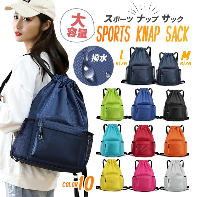 ナップサック スポーツバッグ ナップザック スポーツ リュック 紐 ジムサック ジムバッグ ジムバック おしゃれ 女の子 男の子 大きめ 大きいサイズ 防水 撥水 バッグ 学校 プールバッグ プールバック メンズ レディース ナイロン 小学校 小学生 大容量 シンプル