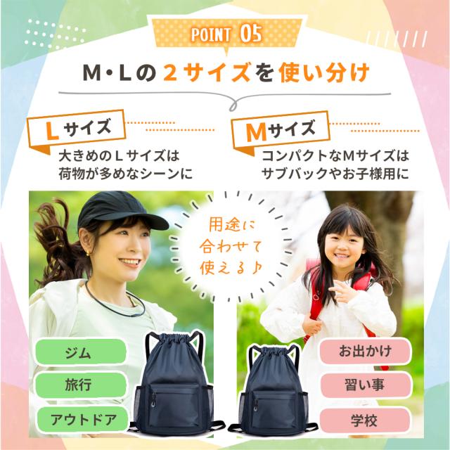 ・通学時のサブバッグや部活用具・着替え入れ、プールバッグとしてもおすすめ。