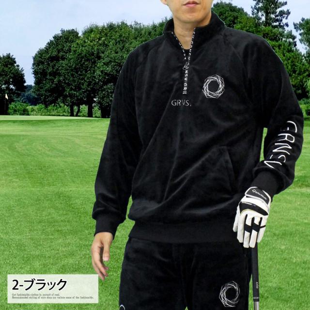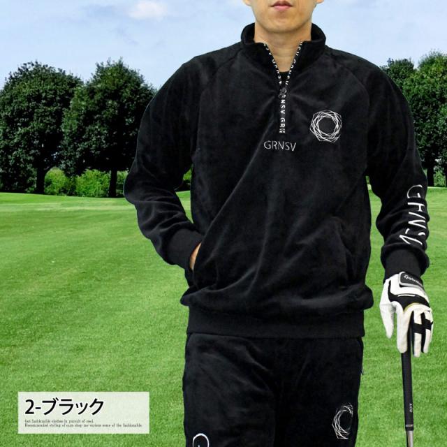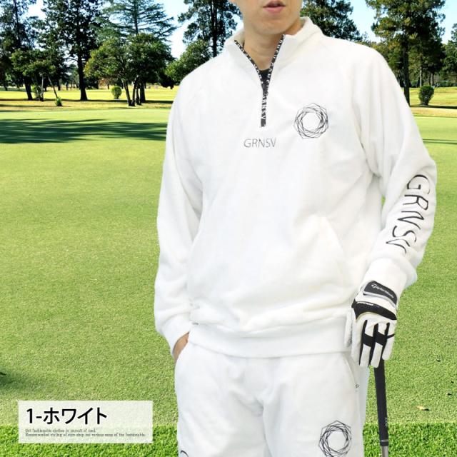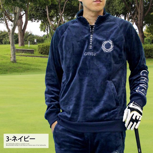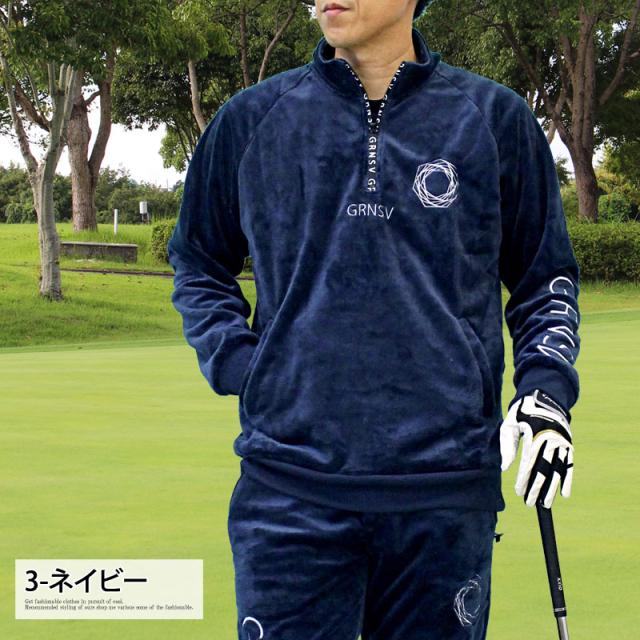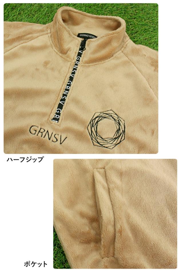 M~XXL 新作 ゴルフウェア メンズ ハーフジップ トレーナー GIORNO SEVEN ジョルノセブン シャギー ボア フリース 軽量 暖かい トップス プルオーバー ロゴ 刺繍 送料無料 おしゃれ ブランド 秋冬