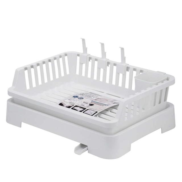 水切りかご 水切りラック 排水ノズル付き シンク横 クッキンパル 銀イオン抗菌 ディッシュドレイナー ホワイト 日本製