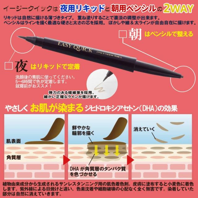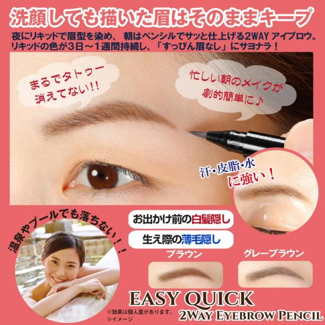 イージークイック 2WAY アイブロウ ペンシル (メール便送料無料) 白髪隠し 薄毛隠し 生え際 眉タトゥー 時短 コスメ 筆ペンタイプ リキッド ペンシル サンレスタンニング
