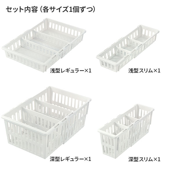 セット内容浅型レギュラー×1個・浅型スリム×1個・深型レギュラー×1個・深型スリム×1個