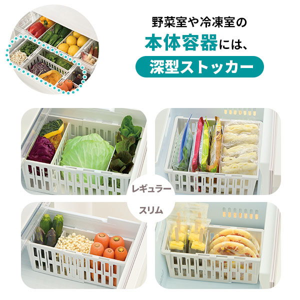 整理整頓に便利な仕切り2枚付き!収納する食材の量や大きさに合わせて仕切りを設置、ケースを区切って使えます。