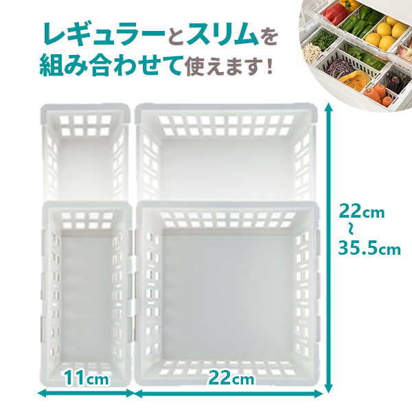 食材やスペースに合わせてサイズを調整レギュラータイプは幅22cm・奥行は22〜33.5cmまで伸縮可能。