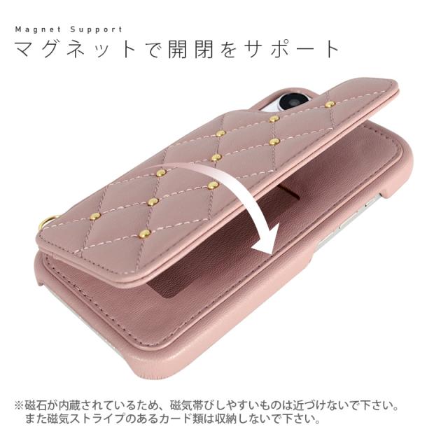 ※iPhoneの機能であるワイヤレス充電は、キルティング部分を開いてご使用下さい。充電器側の性能により使用出来ない場合は、本製品を外してご使用ください。