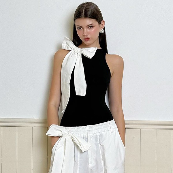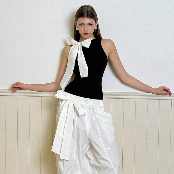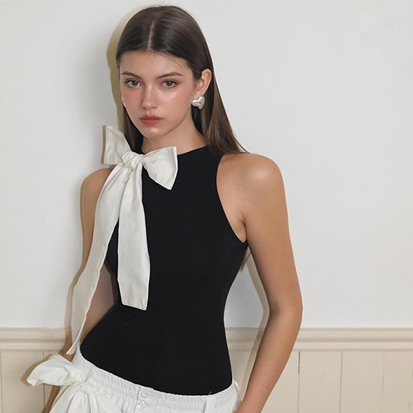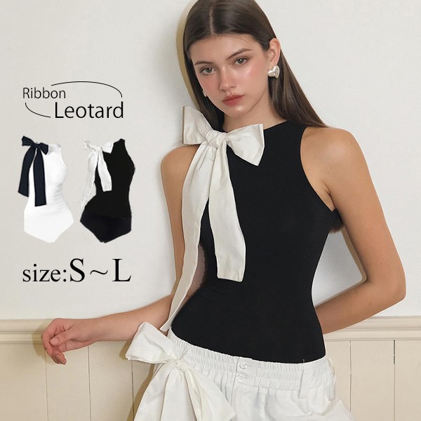 レオタード キャミソール ギャル オールインワン リボン 黒 白 セクシー SEXY 肌見せ 無地 じゅんしょく Y2K 薄手 欧米風 sy014cy
