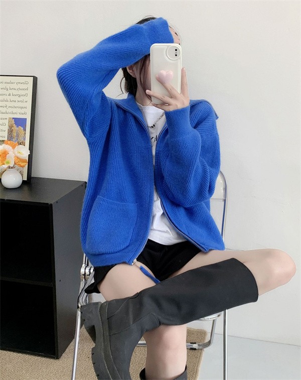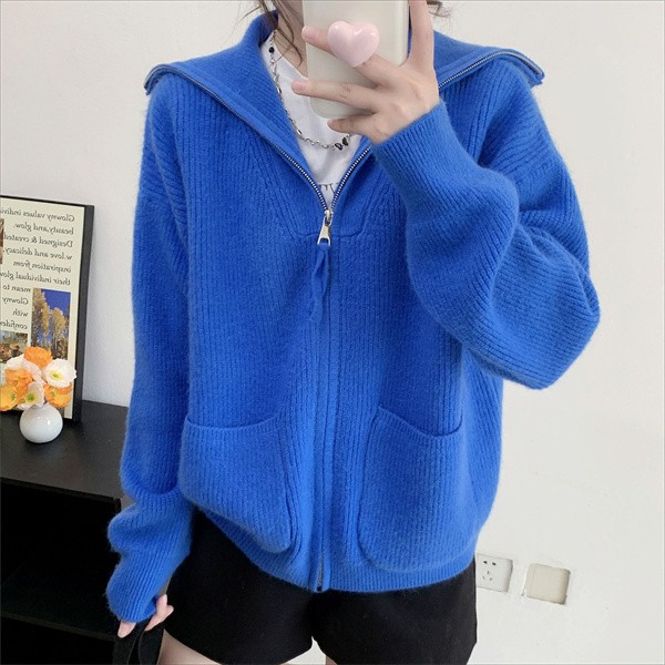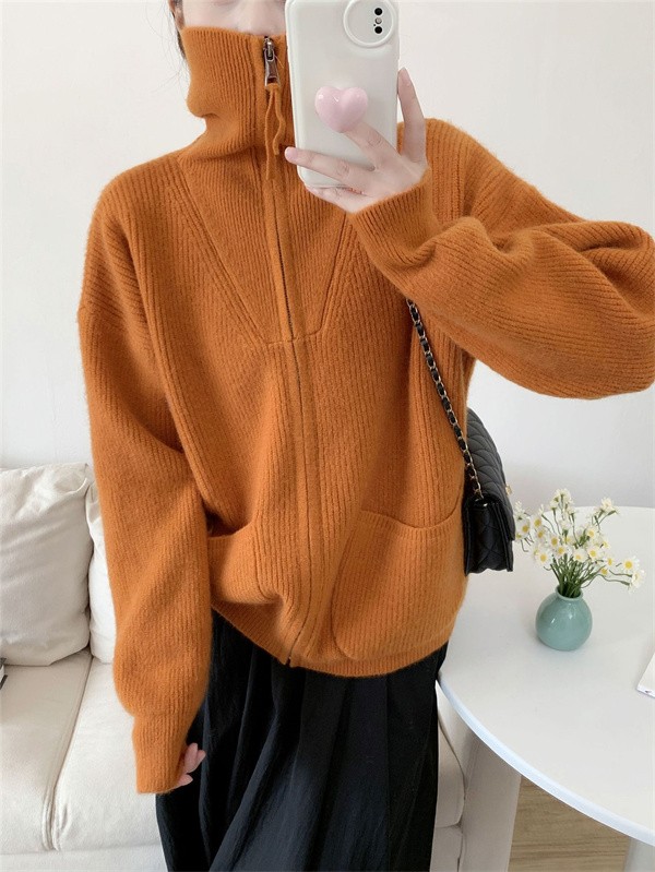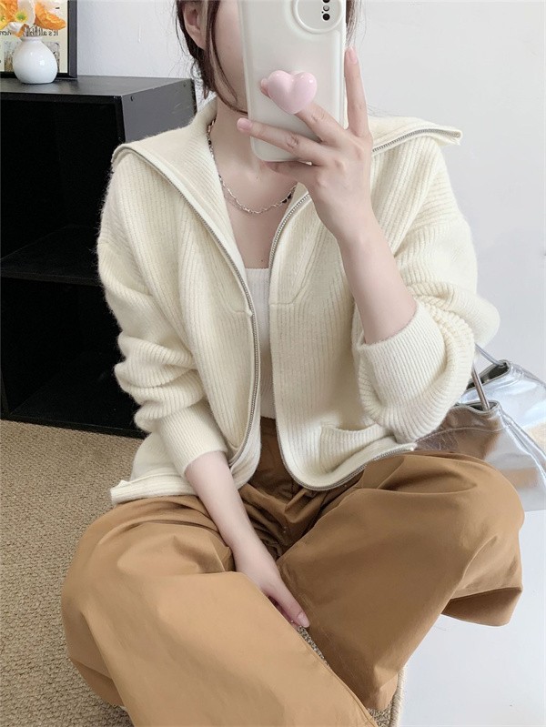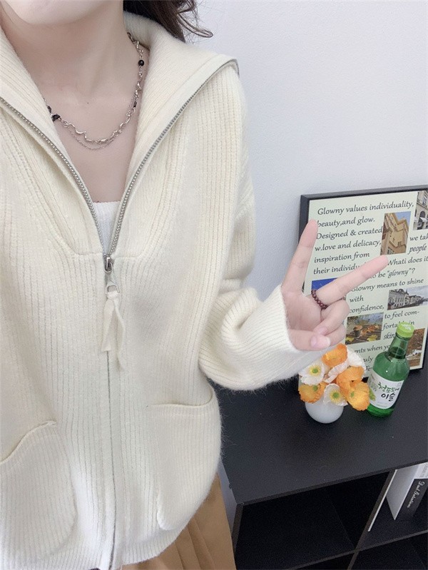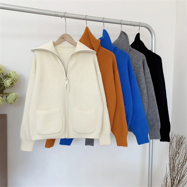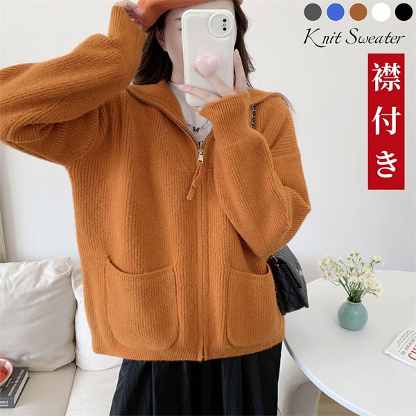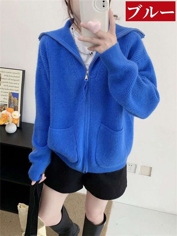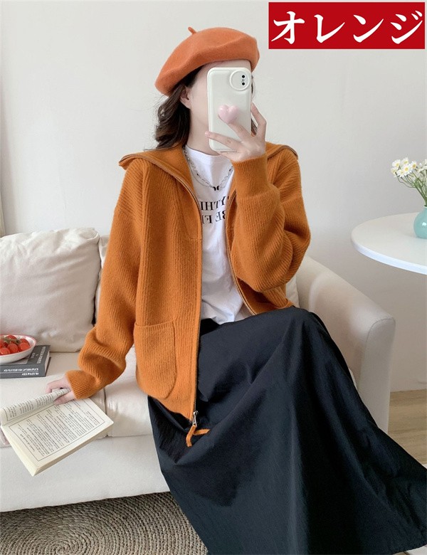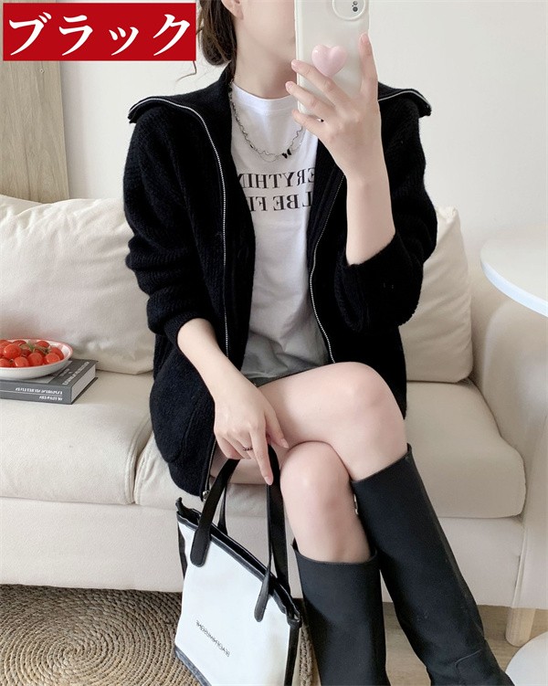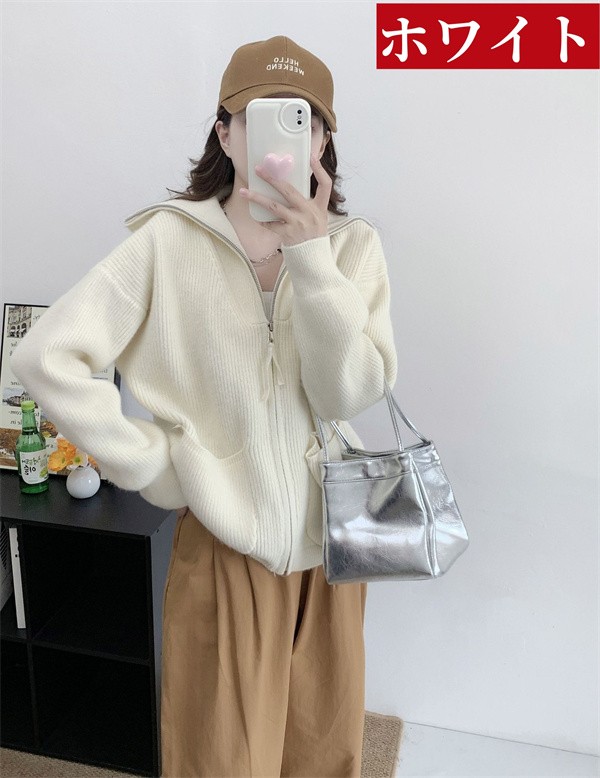 トップス 新作 襟付きケーブルニット レディース 前開き ファスナー付き 無地ニットカーディガン 秋冬 柔らかくゆったり セーターアウター おしゃれ フリーサイズ かわいい
