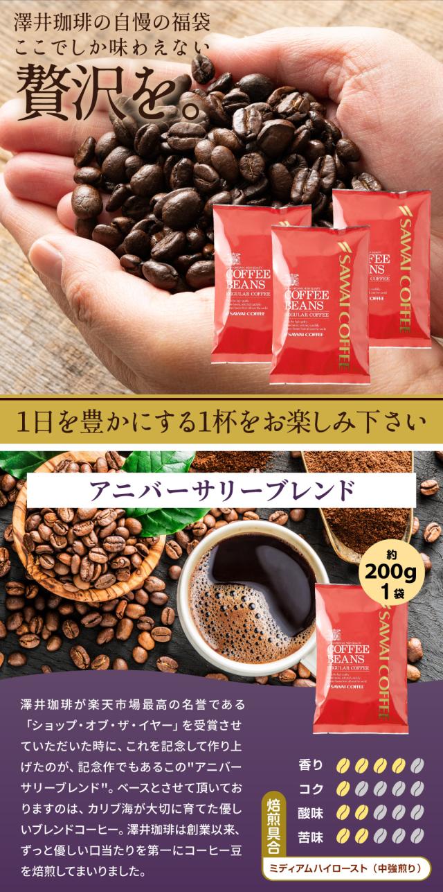 4月のおすすめレギュラー福袋 600g 送料無料 コーヒー 福袋 お試し 200gx3袋 中挽き/豆のまま コーヒー専門店 60杯分 飲み比べ セット 澤井珈琲