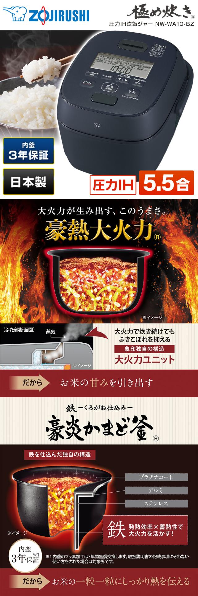 象印 NW-WA10-BZ スレートブラック 極め炊き [圧力IHジャー炊飯器(5.5合炊き)]