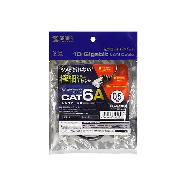 商品仕様: (まとめ) サンワサプライ カテゴリ6A極細 LANケーブル 0.5m ブラック 黒 KB-SL6A-005BK 【×3セット】