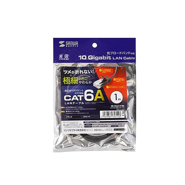商品仕様: (まとめ) サンワサプライ カテゴリ6A極細 LANケーブル 1m ブラック 黒 KB-SL6A-01BK 【×3セット】