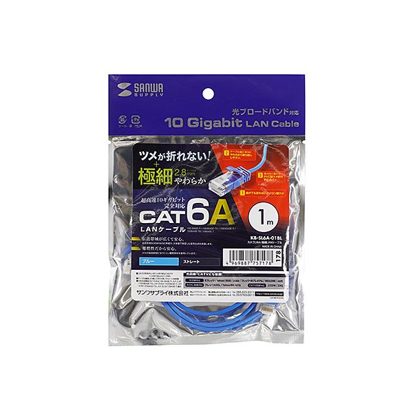 商品仕様: (まとめ) サンワサプライ カテゴリ6A極細 LANケーブル 1m ブルー 青 KB-SL6A-01BL 【×3セット】