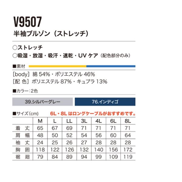 商品仕様: 村上被服 HOOH 半袖ブルゾン(ストレッチ) V9507 インディゴ サイズ:LL 服単品 〔バッテリー・ファン・ケーブル別売〕