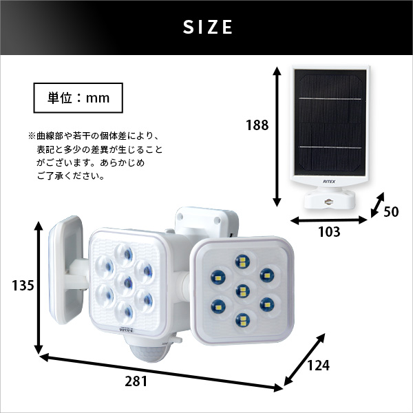 最大1350ルーメンの5W×3灯フリーアーム式LEDセンサーライト(ソーラータイプ)!