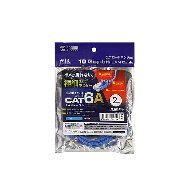 商品仕様: 【5個セット】 サンワサプライ カテゴリ6A極細LANケーブル 2m ブルー 青 KB-SL6A-02BLX5