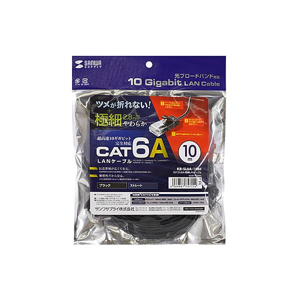 商品仕様: 【5個セット】 サンワサプライ カテゴリ6A極細LANケーブル 10m ブラック 黒 KB-SL6A-10BKX5