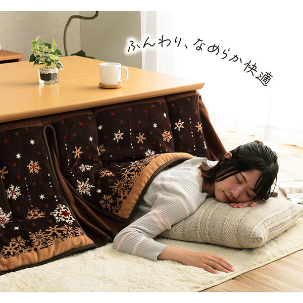 向かい合わせでゆったり座ってくつろげる、大判サイズの省スペースのこたつ布団。