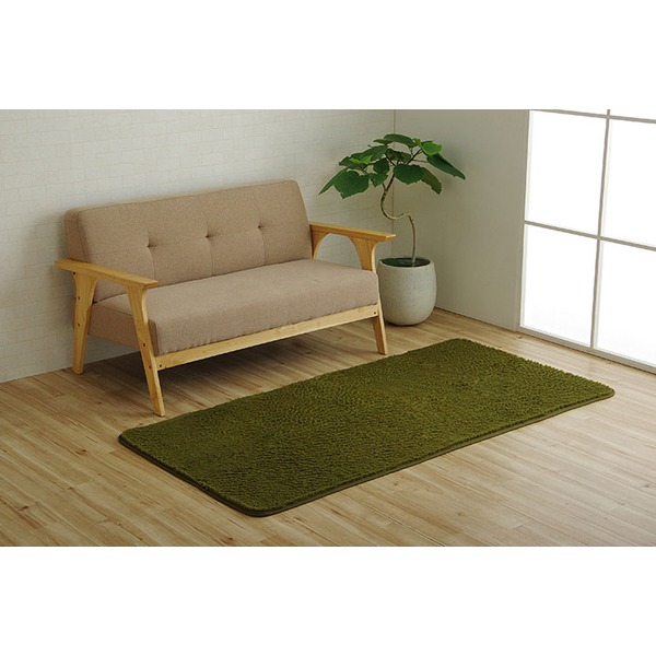ラグ マット 絨毯 約90×185cm 約1畳 オリーブ 洗える ウォッシャブル 長方形 滑りにくい 無地 床暖房 ホットカーペット対応 オールシーズン 送料無料
