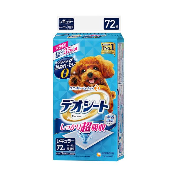 ユニ・チャーム デオシートしっかり超吸収 無香消臭タイプ レギュラー 1パック(72枚) 超吸収パワーで快適な消臭 驚異のデオシート72枚セット 臭いを徹底消臭し、快適な日常をサポート