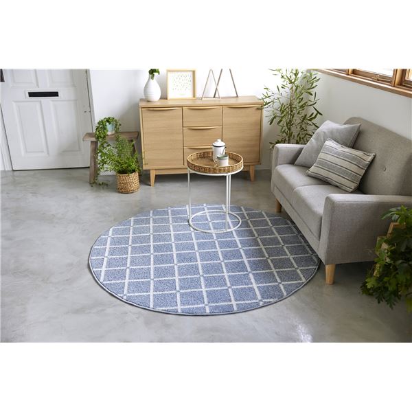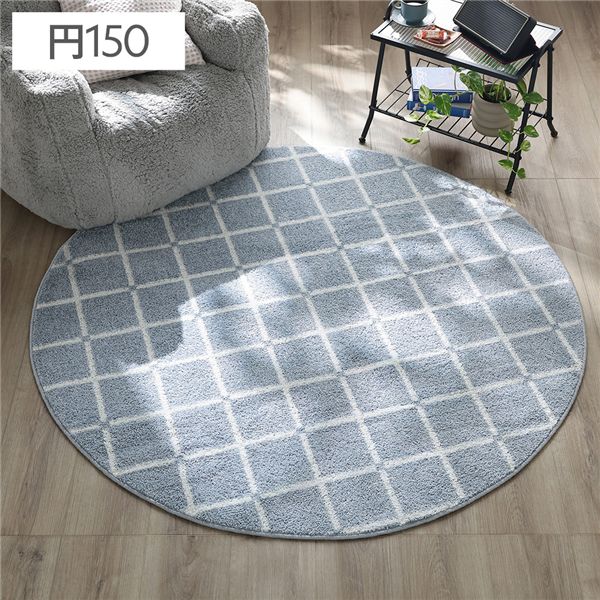 (キーワード: じゅうたん 敷物 高級 流行 デザイン おしゃれ オシャレ 耐久 清潔 機能 TCC533860 RDA0003901338 4767142 インテリア 寝具 カーペット ラグ ラグ 収納 マット 畳 洗える ウォッシャブル ラグの王道、ベーシックなチェック柄が魅力 心地よいオセロのリズムで、幅150×長さ150cmの正円が広がるブルーの世界 日本製 国産 の品質で安心 安全 家