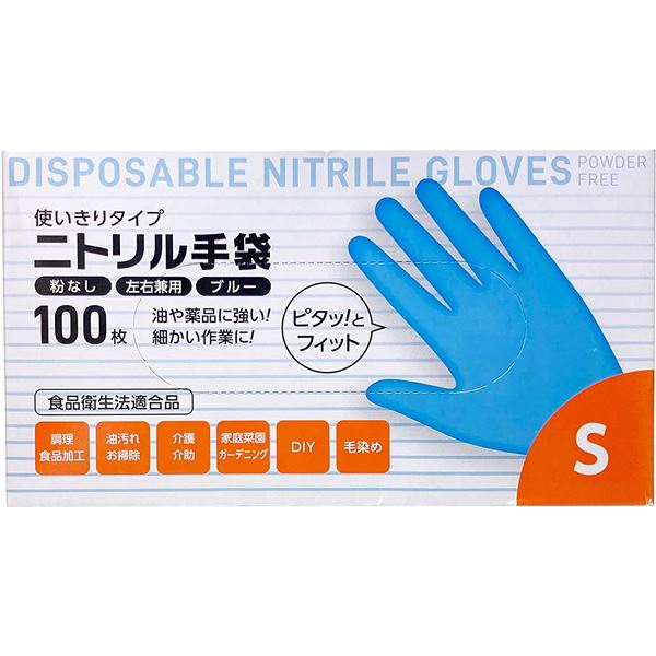 商品仕様: 〔2個セット〕 大和物産 ニトリル手袋 S ブルー 青 (100枚入) 使い捨て 手袋 ニトリル 粉なし パウダーフリー 左右兼用